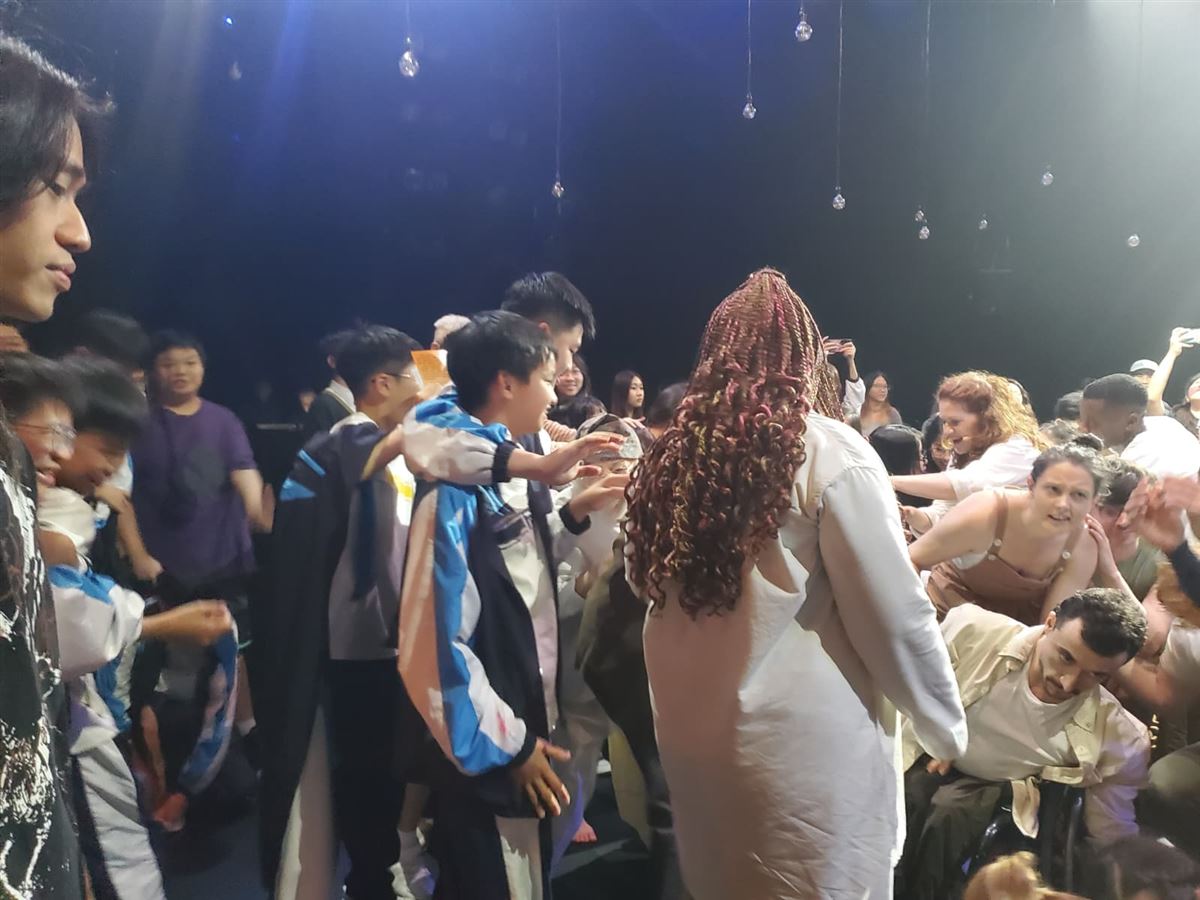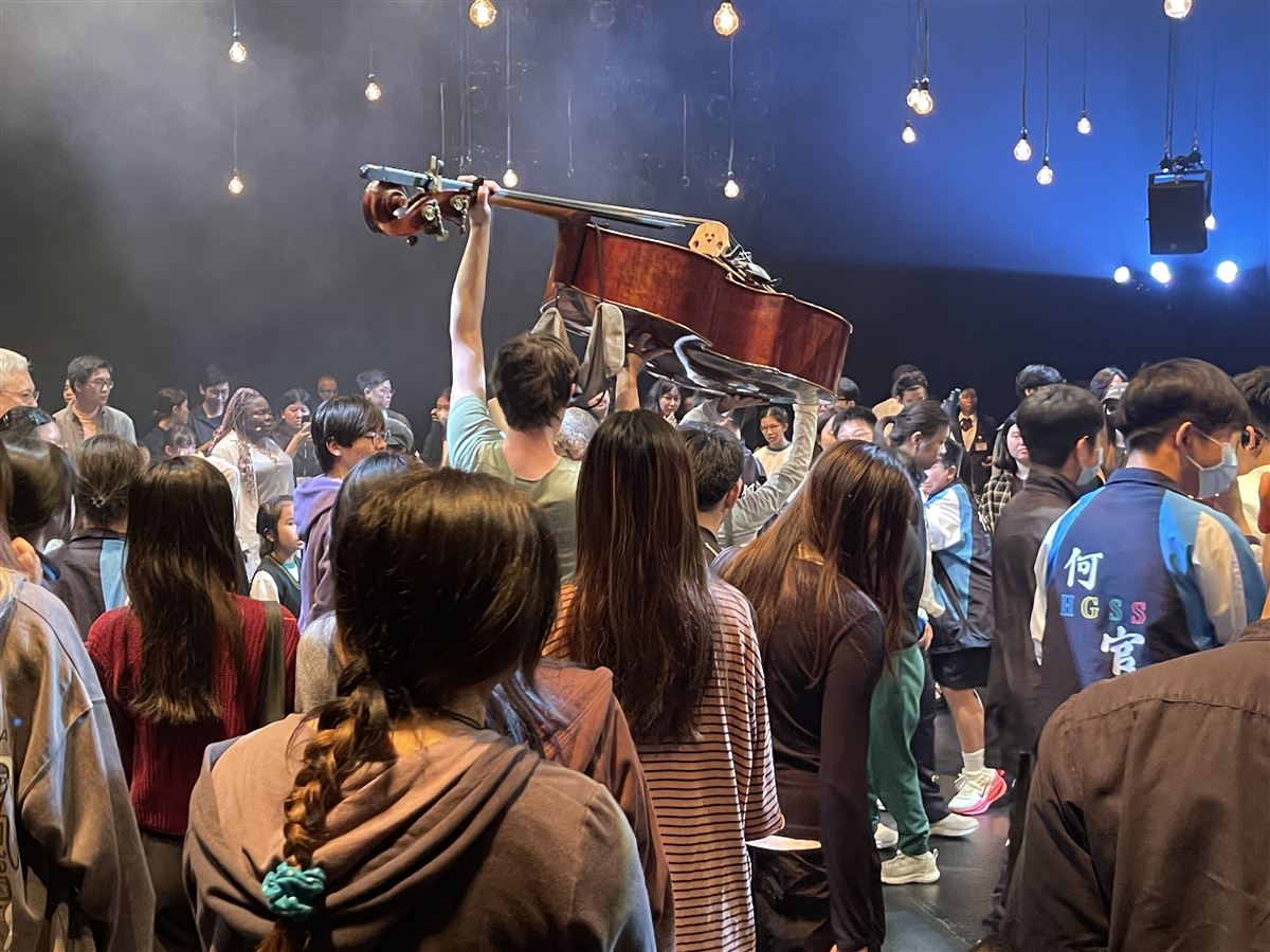 是次表演的形式新穎,打破了觀眾靜坐觀看的傳統模式,採用了沉浸式互動體驗。師生獲邀踏上舞台,在演奏家與舞者之間自由走動、近距離觀賞,從多角度感受音樂與肢體藝術的流動與結合。這種獨特的參與方式,讓大家對劇中關於「探索與發問」的主題有了更切身的體會。