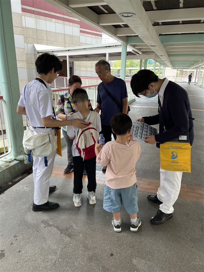 本校輔導組聯同小童群益會推行「健康校園計劃」,藉著安排本校健康校園大使參與不同活動,協助學生培養領袖才能及正面人生觀。本組於7月5日便安排本校健康校園大使參與了聾福會的賣旗日,希望校園大使能藉著與聽障兒童一起賣旗,增加對聽障人士需要的認識,並學習與聽障人士相處的有效方法。