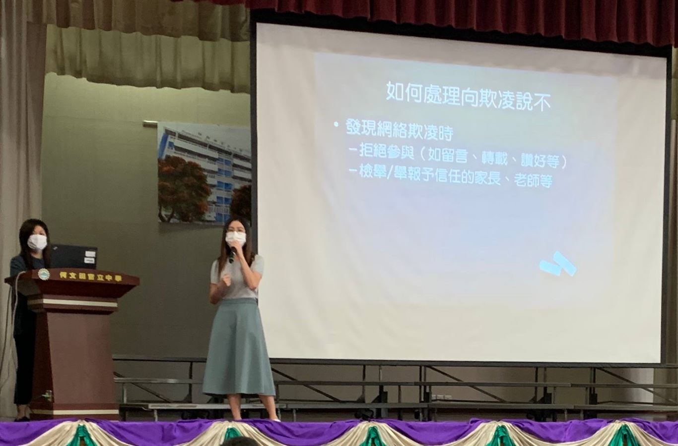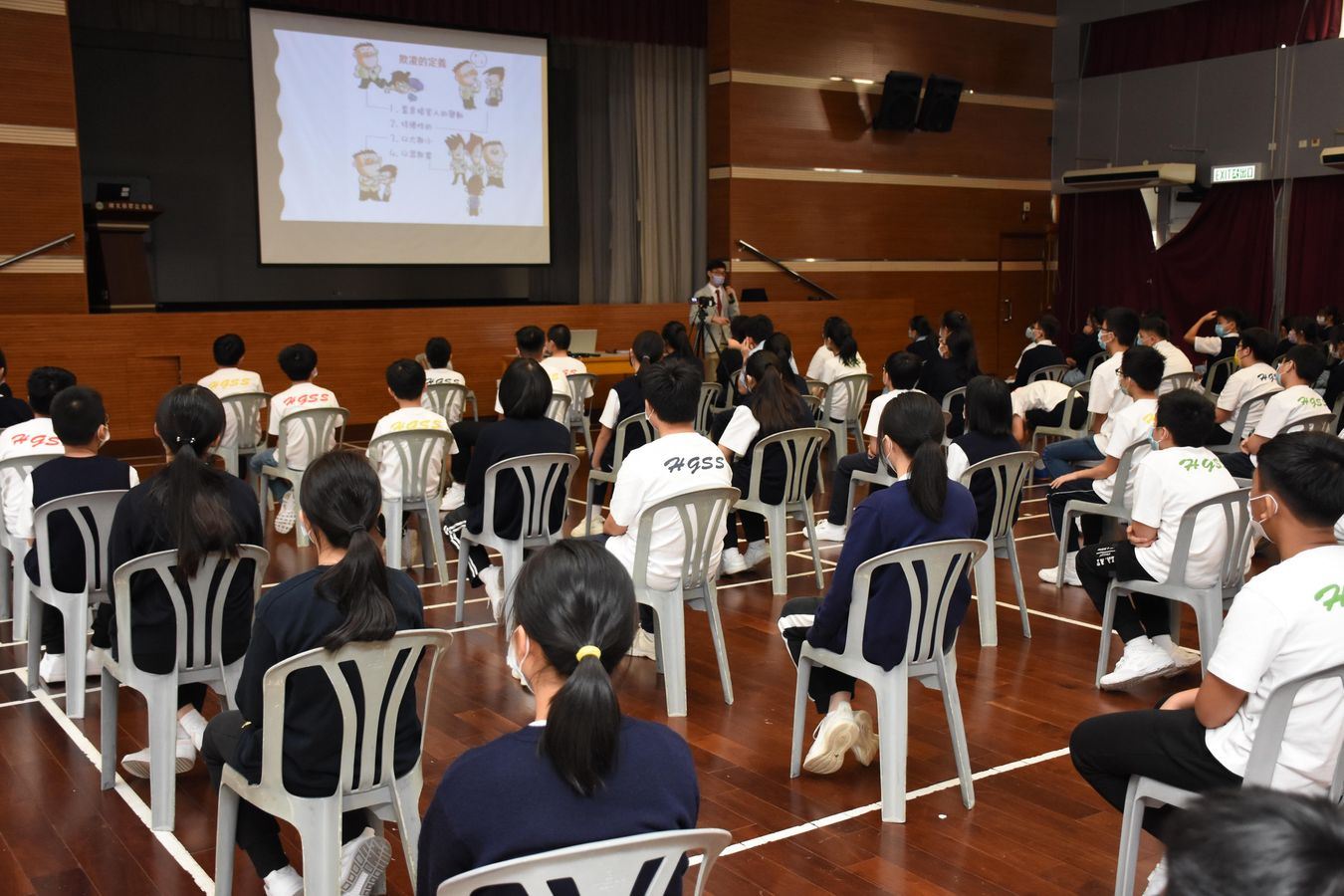 本組邀請了復和綜合服務中心到校舉辦了一系列有關共創和諧校園的活動,計劃包括為中一及中二級所有學生提供兩節的班本工作坊,以及為中一至中五所有學生提供一節講座。中一及中二級的學生透過班本工作坊,能夠認識校園欺凌的成因及影響,以及引發他們建立互相尊重的態度,共創和諧的校園生活。而講座則以直播形式進行,內容主要聚焦討論網上欺凌,包括網上欺凌的定義,形式及後果。學生在講座中能夠了解更多應對網上欺凌的方法,並警惕學生不要踏入網上欺凌的陷阱。最後,輔導主任以及兩位駐校社工於11月18日及11月26日為中二和中三級學生安排集會,再次加以說明欺凌的影響及後果,以鞏固學生的認知。