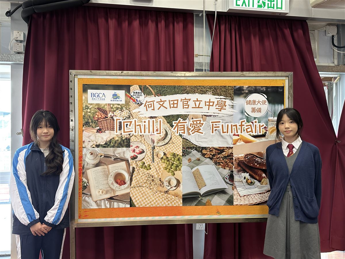 於星期四和五(13-14/2 )12:30-1:00pm 於學校禮堂舉行「Chill 有愛」攤位活動,有攤位遊戲、小食、做手工、運動挑戰,同時有現場音樂和舞蹈表演,讓同學可以在午飯後放鬆一下。所有的攤位都是由健康校園大使用心設計。