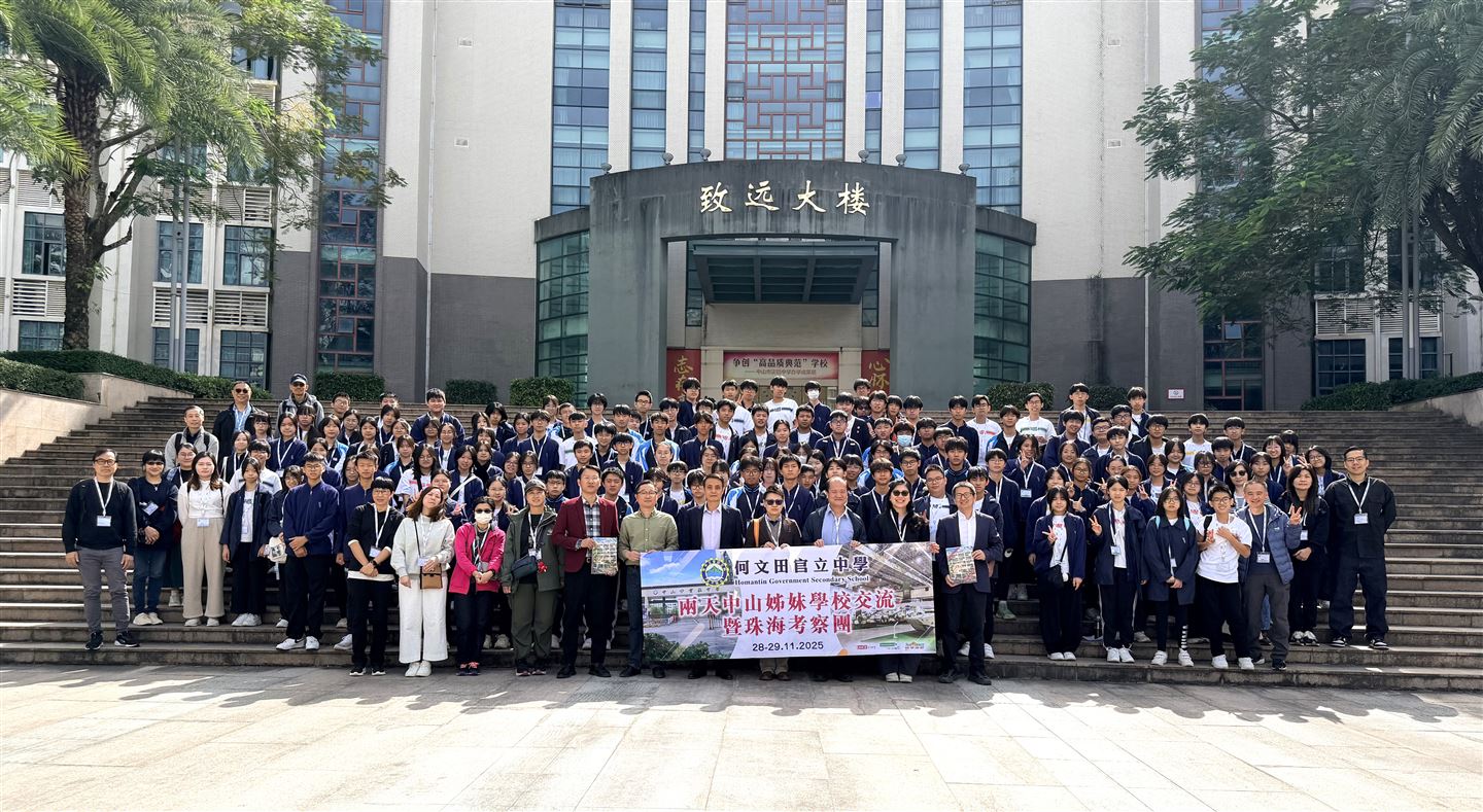 為拓展學生視野、促進兩地教育交流,本校於2025年11月28日至29日組織中三級全體同學,開展了一次富有意義的跨地域學習活動。本次交流考察團由羅家華副校長與鄭頌慈副校長親自帶領,隨團包括14位老師、4位家長義工及全級同學,合共145人,前往位於中山市的姊妹學校——中山市實驗中學,進行為期兩日一夜的深入交流與實地參訪。
